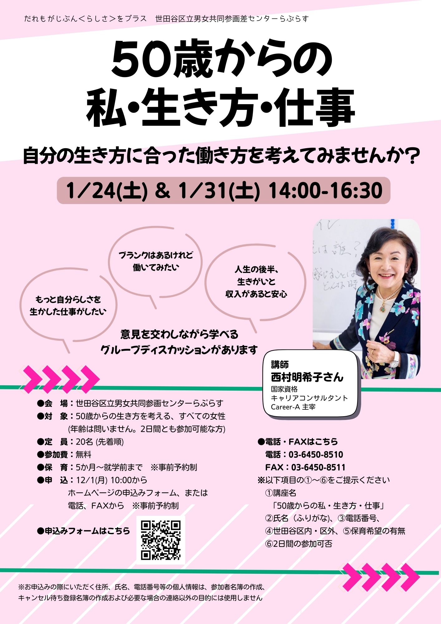 【12/1受付開始】講座「50歳からの私・生き方・仕事」